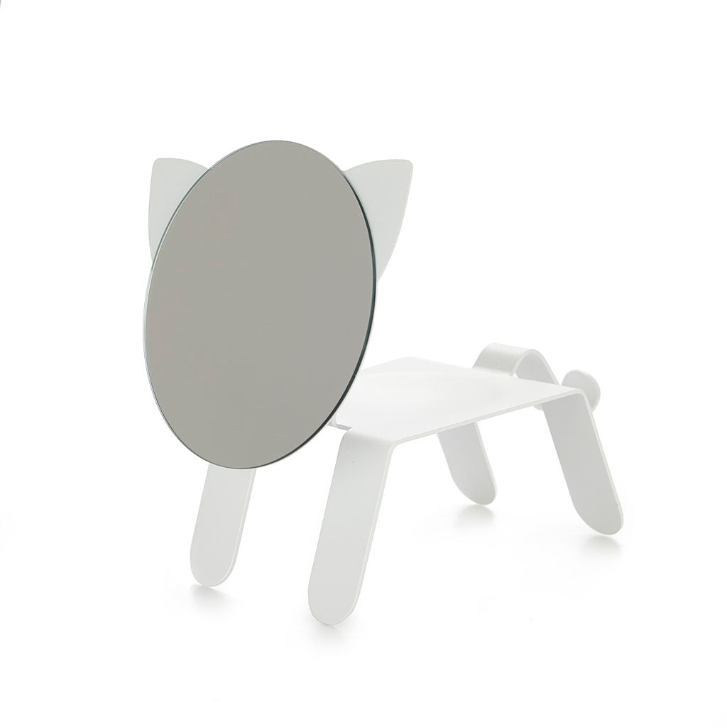 Specchiera da tavolo linea Cat prodotta da Balvi realizzata in metallo colore bianco misure cm 19,8 x 16 x 23,8